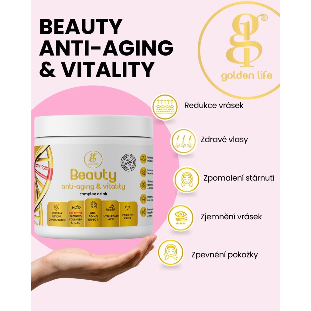 Produkt je složený z aktivních látek nejvyšší čistoty a kvality, včetně patentovaných složek a rybích kolagenních peptidů. Díky složce MSM, která podporuje obnovu svalových buněk a urychluje hojení, je BEAUTY ANTI-AGÍNG&VITALITY také velmi doporučován po každém estetickém zákroku či operaci pro účinnou regeneraci a rekonvalescenci.
