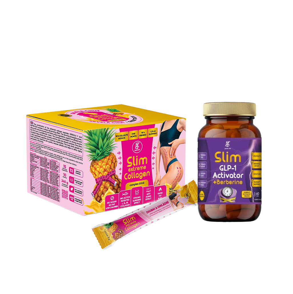 Hubnutí má smysl jen tehdy, když tělo spolupracuje. Slim GLP-1 Activator a Slim Extreme Collagen tvoří dokonale vyvážené duo, které podporuje spalování tuků i přirozenou regeneraci. Aktivátor pomáhá omezit chutě, stabilizovat hladinu cukru a udržet energii po celý den, zatímco kolagen zpevňuje pokožku, chrání klouby a dodává tělu sílu i pružnost. Společně působí v dokonalé synergii – pro postavu, která je štíhlá, pevná a zdravá zevnitř i zvenku.